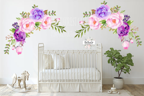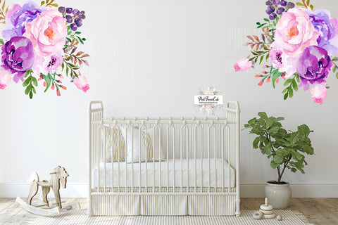 2 - 40" Pink Purple Peony Wall Decal Sticker Peonies Rose Floral Flower Decals Sticker Art Boho Decor