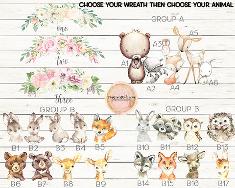 2 - Choose TWO Boho Fox Bear Deer Bunny Wall Art Print Woodland Floral Nursery Baby Girl Room Hedgehog Wolf Owl Raccoon Blush Mauve Peach Coral Floral Bohemian Watercolor Printable Decor