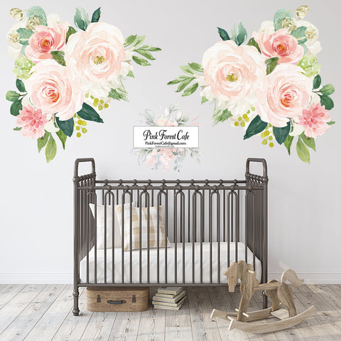 2 - 60" Blush Pink Peony Wall Decal Sticker Peonies Rose Floral Flower Decals Sticker Art Boho Decor
