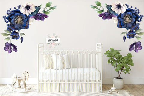 2 - 40" Purple Blue Peony Wall Decal Sticker Peonies Rose Floral Flower Decals Sticker Art Boho Decor