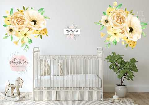 2 - 40" Yellow Anemone Peony Wall Decal Sticker Peonies Rose Floral Flower Decals Sticker Art Boho Decor