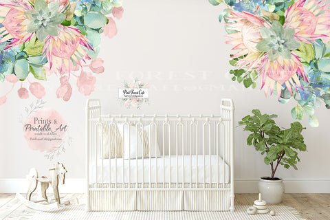 2 - 40" Protea Australian Peony Wall Decal Sticker Aussie Floral Blush Eucalyptus Pink Flower Decals Sticker Art Boho Decor