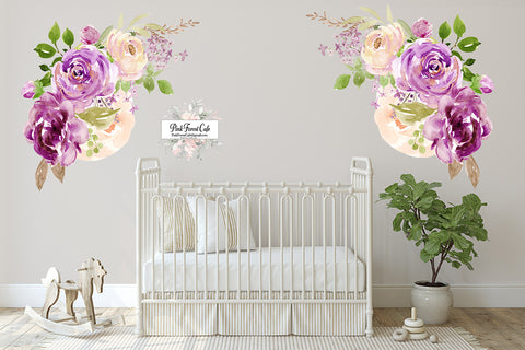 2 - 40" Purple Feather Peony Wall Decal Sticker Peonies Rose Floral Blush Ivory Pink Flower Decals Sticker Art Boho Decor