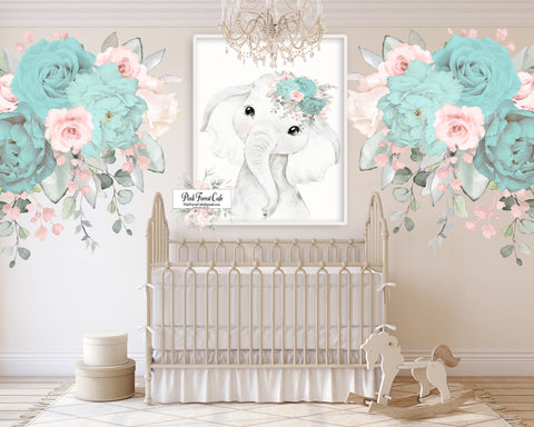 2 - 40" Tiffany Blue Blush Pink Peony Wall Decal Sticker Peonies Rose Floral Flower Decals Sticker Art Boho Decor