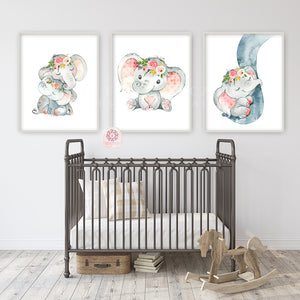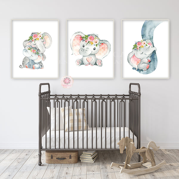 3 Boho Elephant Wall Art Print Baby Girl Nursery Whimsical Zoo Safari Animal Watercolor Printable Decor by Pink Forest Café - Making your world a happier place, one wall at a time!