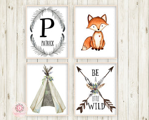 4 Fox Arrow Teepee Personalized Baby Name Wall Art Print Woodland Nursery Baby Boy Room Set Lot Prints Printable Decor