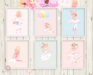 SALE 6 Ballerina Baby Girl Nursery Wall Art Print Ethereal Ballet Dancer Whimsical Dancing Bohemian Floral Printable Decor