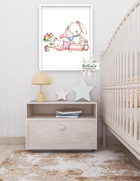 Alice In Wonderland Wall Art Print Vintage White Rabbit Nursery Baby Girl Room Printable Décor by Pink Forest Café - Making your world a happier place, one wall at a time!