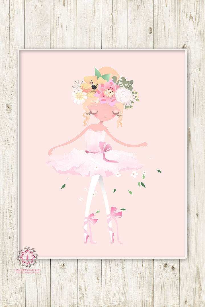 Ballerina Baby Girl Nursery Wall Art Print Ballet Dancer Ethereal Whimsical Bohemian Floral Minimalist Printable Decor by Pink Forest Cafe - "Making your world a happier place, one wall at a time!"