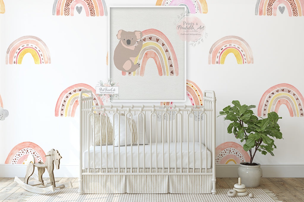 Boho Blush Koala Bear Australian Wall Art Print Rainbow Aussie Animal Boho Baby Watercolor Nursery Girl Room Printable Décor by Pink Forest Café - Making your world a happier place, one wall at a time!