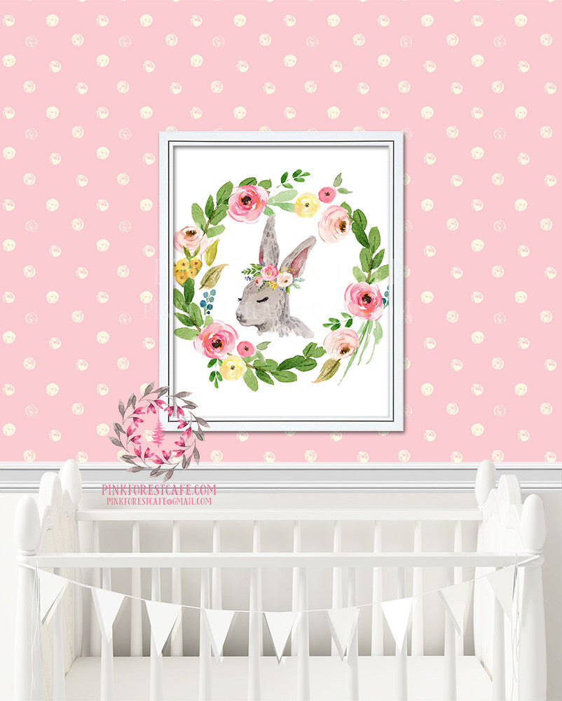 Boho Bunny Rabbit Watercolor Woodland Printable Wall Art Nursery Home Decor Print