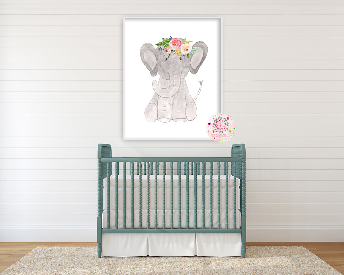 Boho Elephant Wall Art Print Baby Girl Nursery Whimsical Zoo Safari Animal Watercolor Printable Decor by Pink Forest Café - Making your world a happier place, one wall at a time!