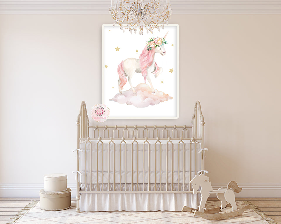 Boho Gold Star Unicorn On A Cloud Wall Art Print Baby Girl Nursery Ethereal Whimsical Peonies Peony Floral Printable Décor by Pink Forest Café - Making your world a happier place, one wall at a time!