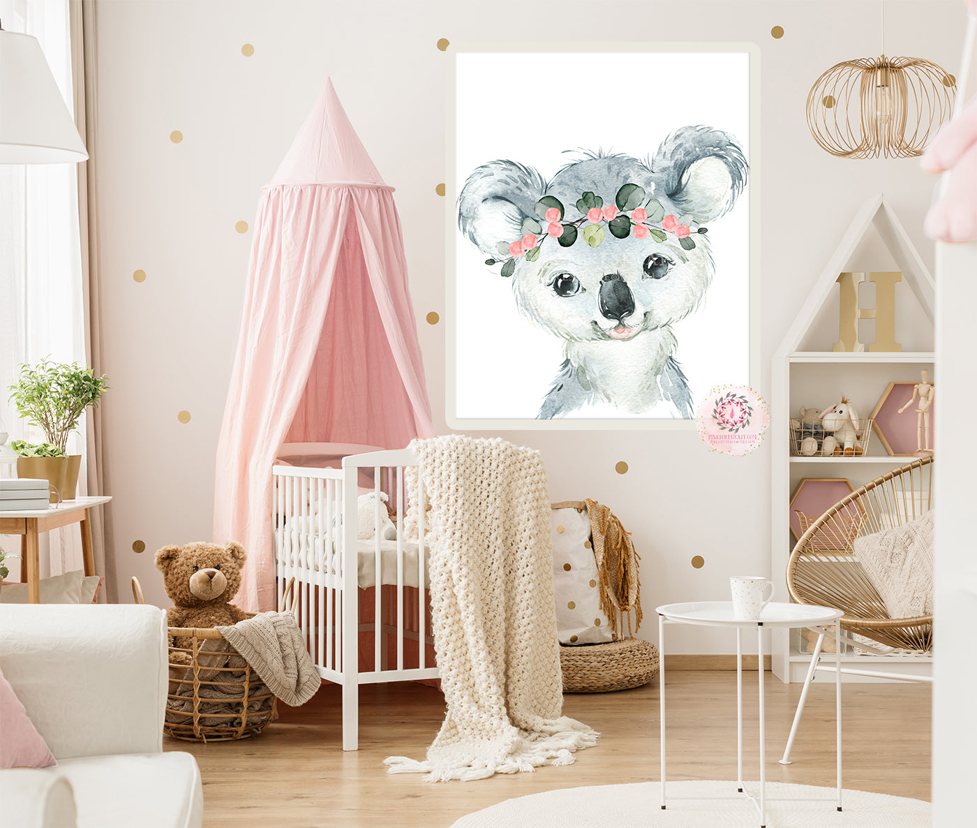Boho Koala Bear Wall Art Print Woodland Nursery Baby Girl Coral Neutral Room Eucalyptus Watercolor Australian Animal Printable Décor from Pink Forest Café - Follow on Pinterest and Instagram - "Making your world a happier place, one wall at a time!"
