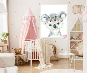 Boho Koala Bear Wall Art Print Woodland Nursery Baby Girl Coral Room Eucalyptus Watercolor Australian Animal Printable Decor