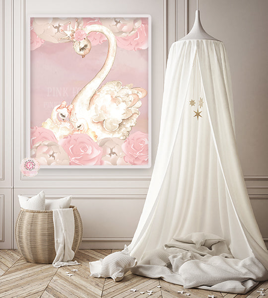 Boho Swan Baby Girl Nursery Wall Art Print Ethereal Crown Whimsical Bohemian Floral Minimalist Printable Decor by Pink Forest Cafe