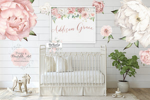 Custom Calligraphy Baby Girl Name Wall Art Print Personalized Gift Peony Blush Roses Nursery Decor
