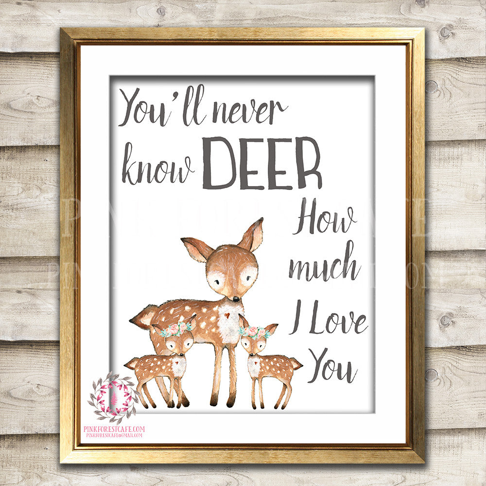 Deer Fawn Twins You Are My Sunshine You'll Never Know How Much I Love You Woodland Printable Wall Art Nursery Home Decor