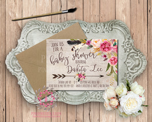 Dreamcatcher Arrow Tribal Theme Baby Bridal Shower Birthday Party Printable Invitation Invite
