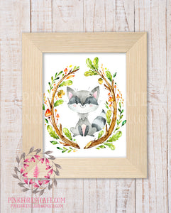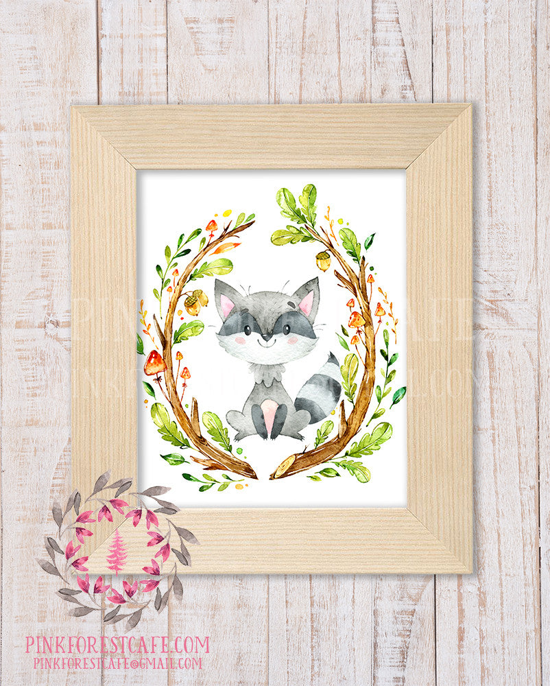 Raccoon Woodland Printable Print Wall Art Rustic Watercolor Baby Nursery Home Decor