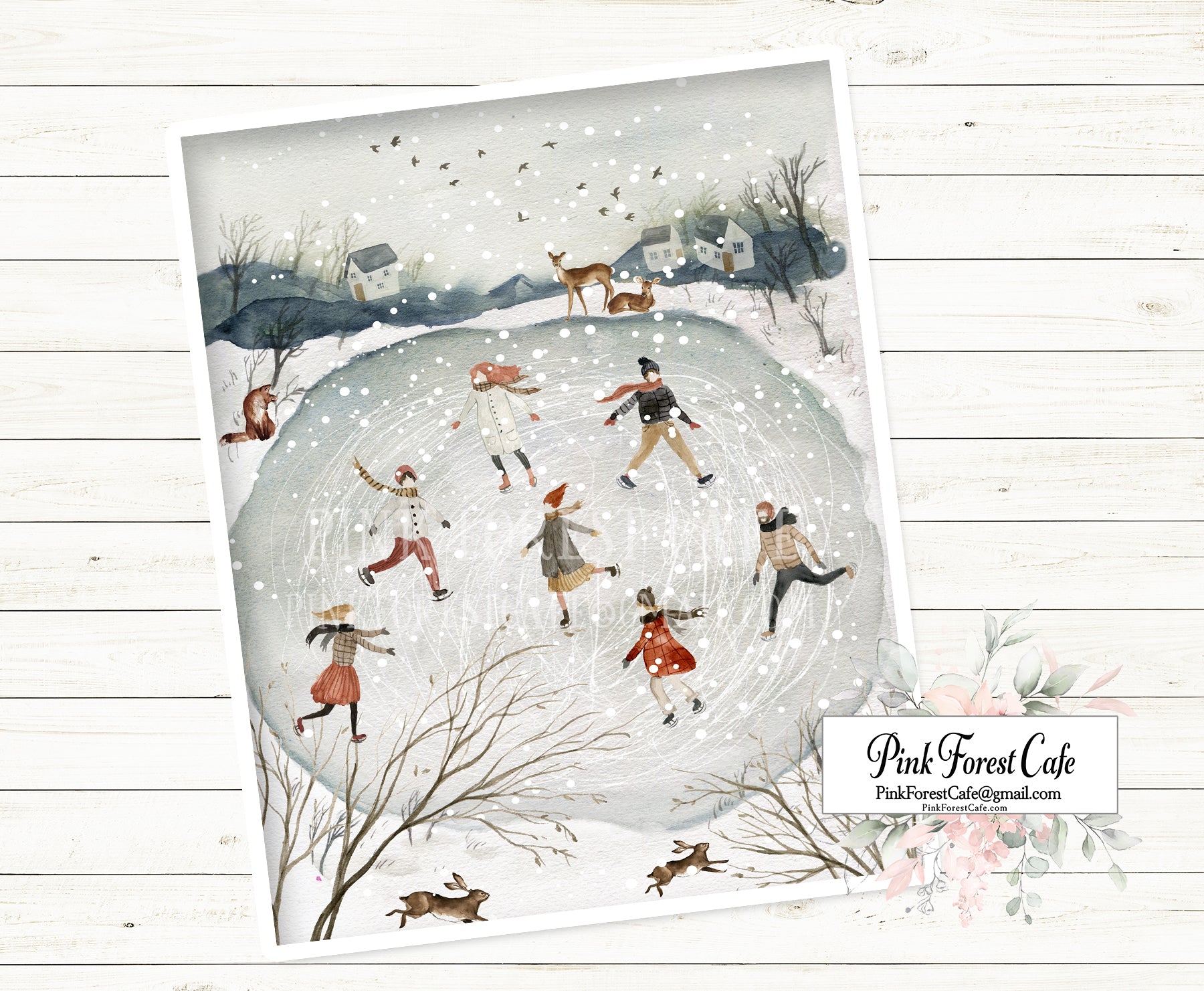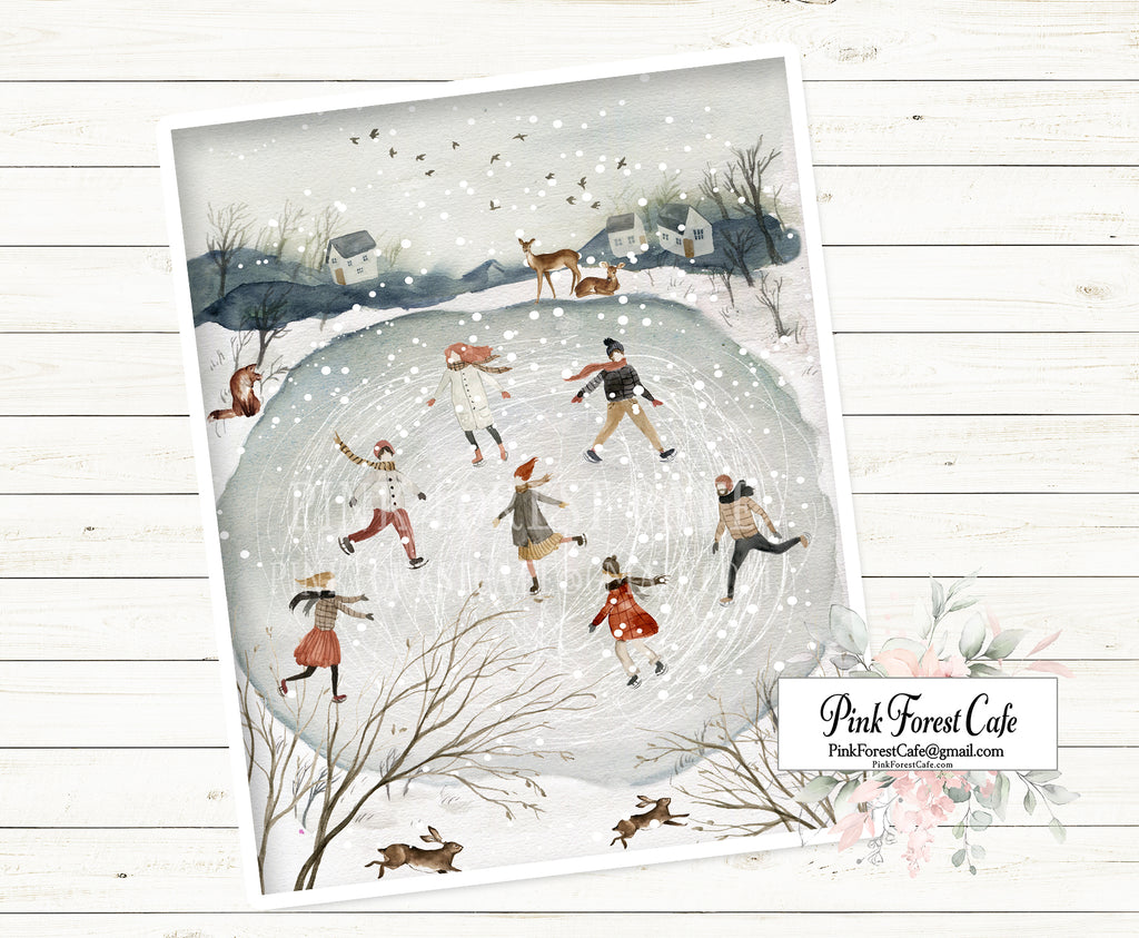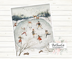 SALE Folk Winter Wonderland Ice Skating Rink Wall Art Print Printable Home Décor by Pink Forest Café - Making your world a happier place, one wall at a time!