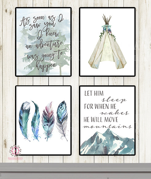 SALE Lot of 4 Woodland Boy Wall Art Prints Boho Nursery Baby Room Set Prints Bohemian Print Printable Home Decor by Pink Forest Cafe