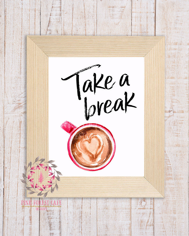 Take A Break Coffee Cup Mug Wall Art Print Heart Home Office Printable Decor
