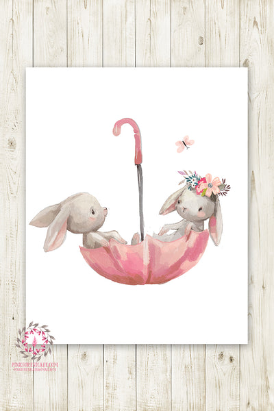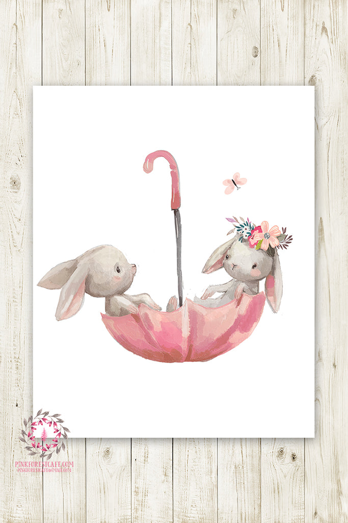 Umbrella Bunnies Bunny Rabbit Boho Girl Nursery Wall Art Print Baby Room Watercolor Printable Décor by Pink Forest Café - Making your world a happier place, one wall at a time!