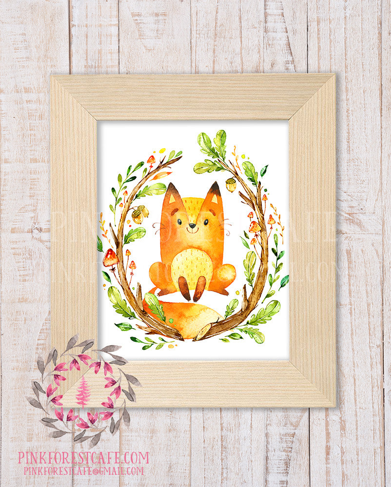 Woodland FOX Printable Print Wall Art Rustic Watercolor Baby Nursery Home Decor